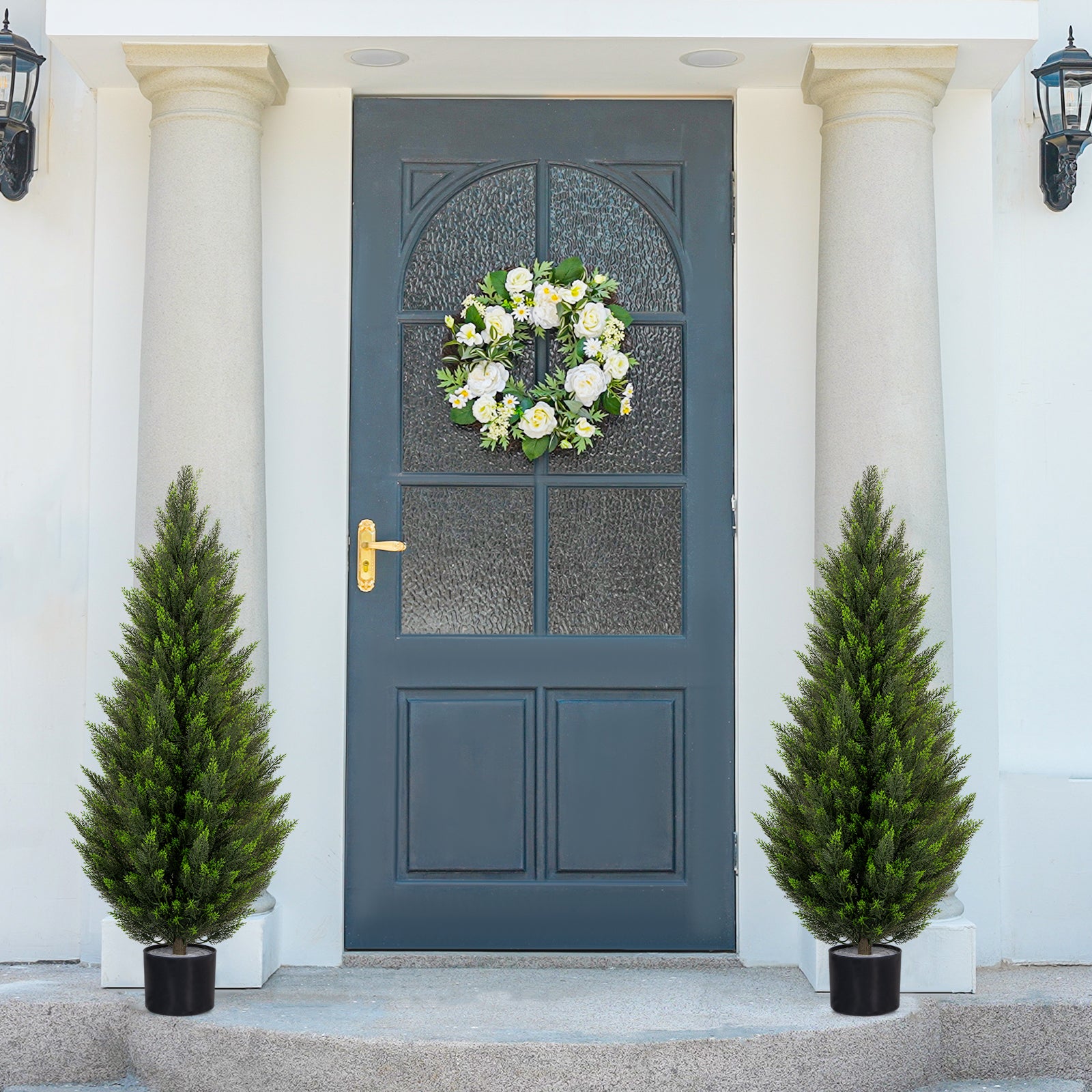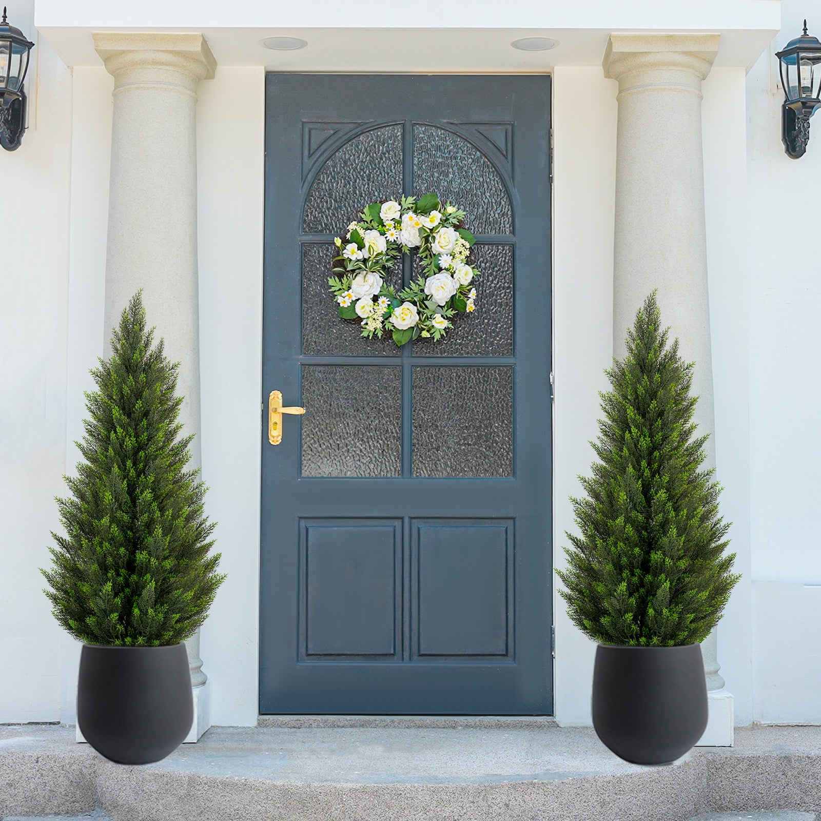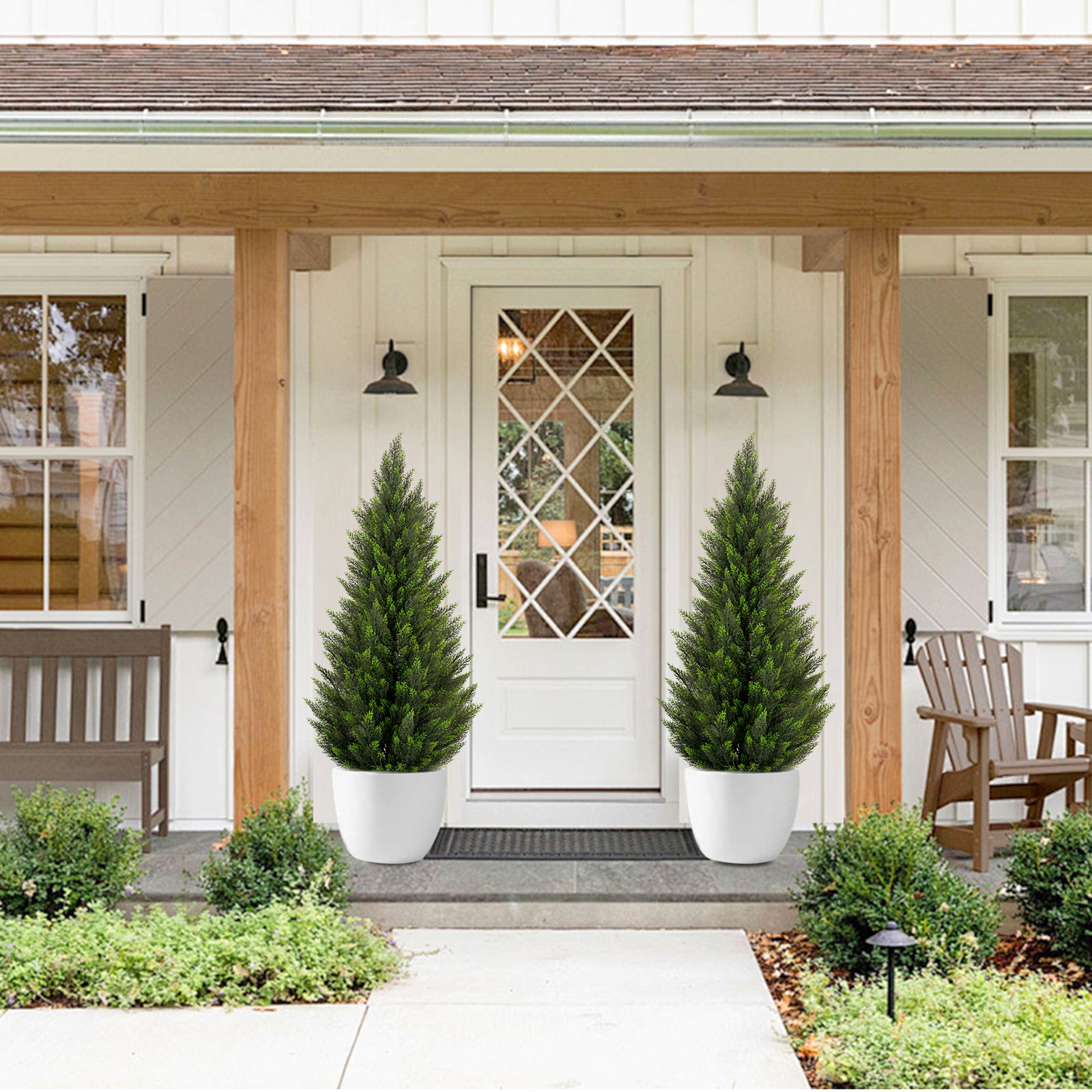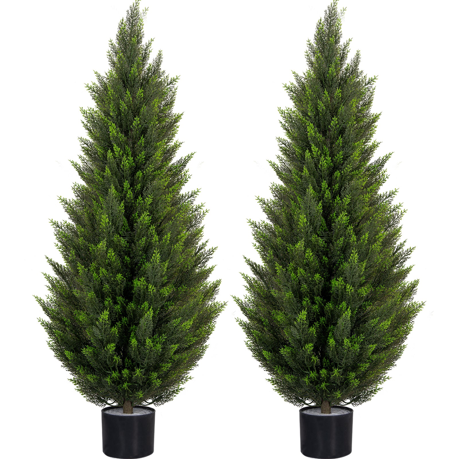 VIVATREES 2Pack 5ft Outdoor Artificial Cedar Topiary Trees, All-Weather Faux Pine for Home Porch Entryway Decor